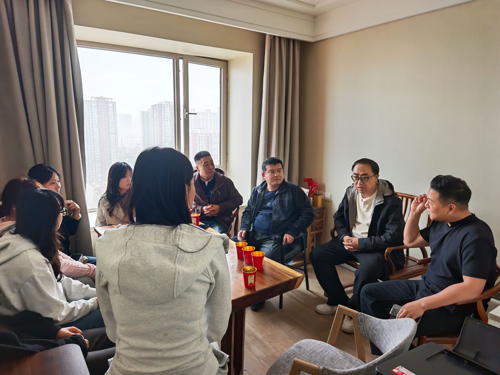 辅导员洪涛、包佳良带领10名学生代表,前往陕西华锐倾源文化传媒有限公司开展访企拓岗交流活动。